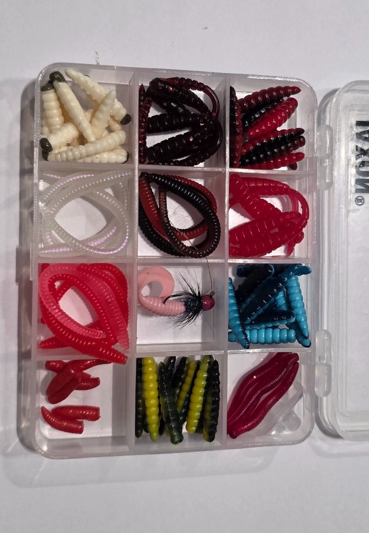 VeJeK Posted March 27 Posted March 27 (edited) Witam serdecznie Na sprzedaż widoczne przynęty okoniowe oraz kilka larw kleniowych Jest tutaj ponad 300 sztuk różniej wielości przynęt różnych firm takich jak Keitech Bratko baits Crazy fish Select Relax I wiele innych Sądzę że to doskonały zestaw okoniowy na początek przygody z łowieniem okoni jak i nie tylko Kwota jak mnie interesuje to 150zl czyli mniej niż 0.50gr za sztukę Cena myślę że atrakcyjna, do tego zestawu dorzucę oczywiście jakieś pudełko żeby to zapakować jak i jeszcze kilka innych przynęt których nie ma na zdjęciach Jakieś 95% to przynęty nigdy nie nabijane na haczyk Serdecznie polecam i zapraszam Edited March 27 by VeJeK